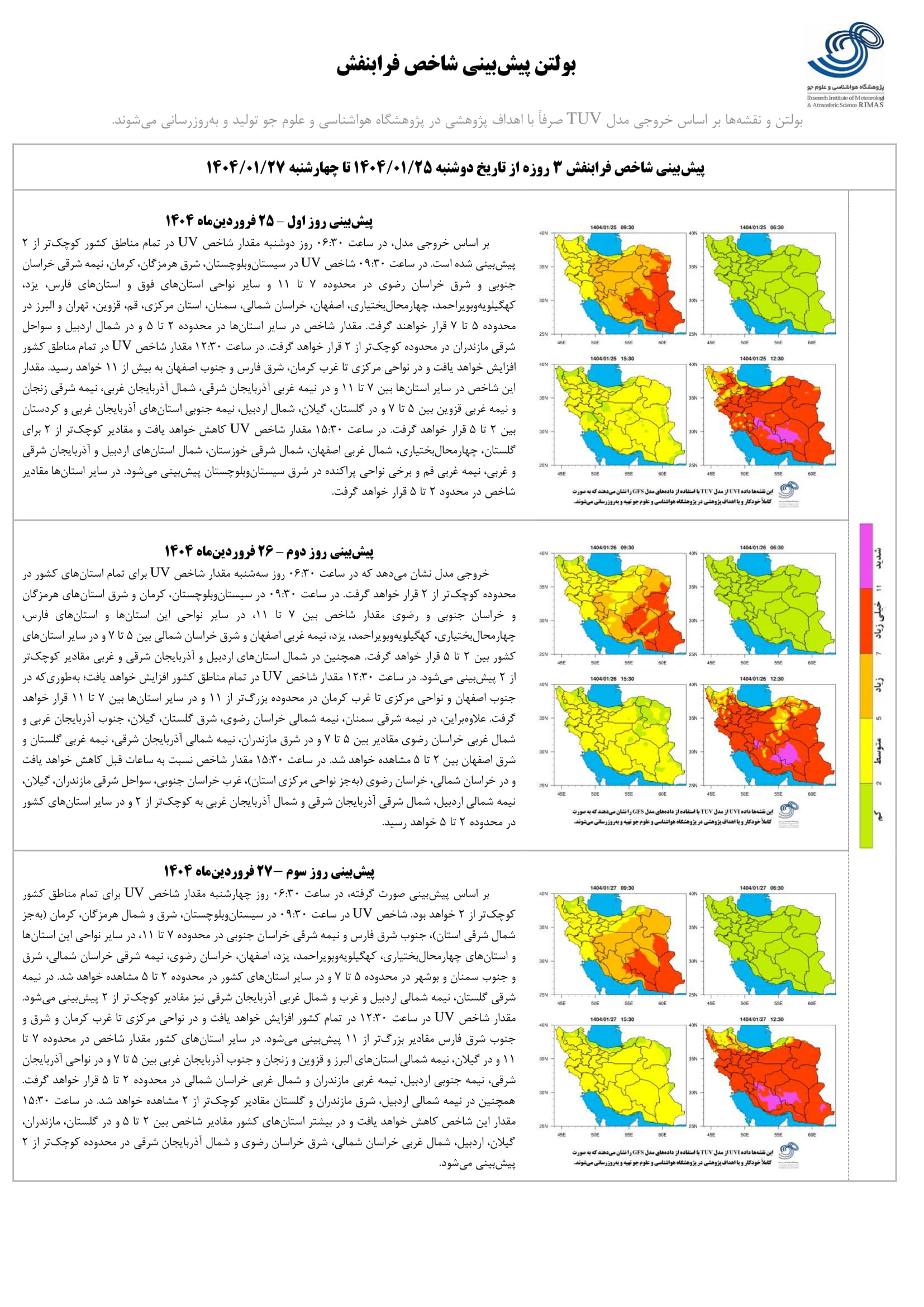 بولتن شماره ۱۸۲ پیش بینی شاخص پرتو فرابنفش ۳ روزه از تاریخ ۲۵ تا ۲۷ فروردین ماه ۱۴۰۴ ۲۵ فروردین ۱۴۰۴ | ۱۰:۴۰ کد : ۱۱۶۷ اخبـــار پژوهشگاه گزارش پیش بینی شاخص پرتو فرابنفش ارسال به دیگران نام شما ایمیل شما ایمیل دریافت کننده ارسال انصراف تعداد بازدید:۷۳