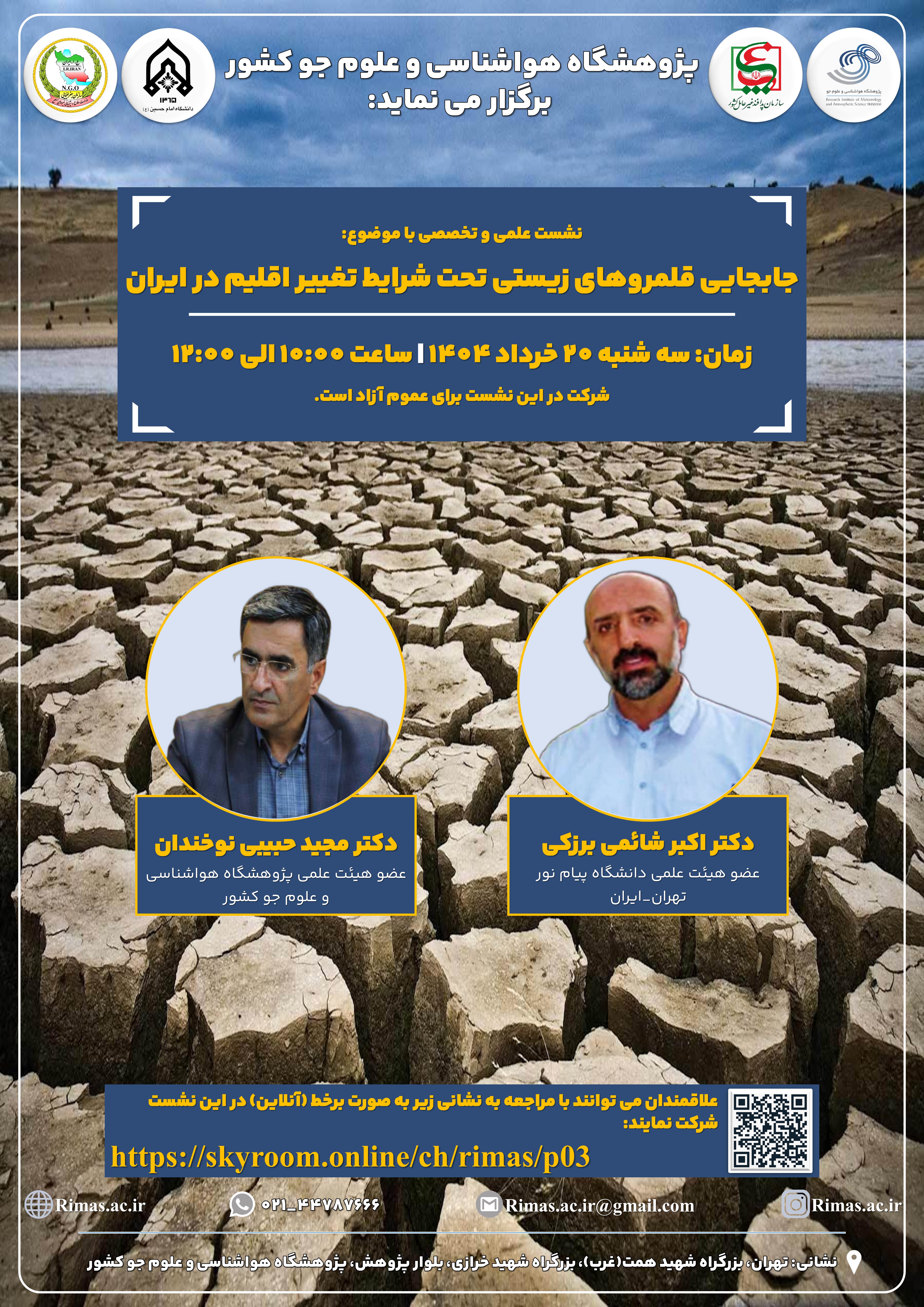 نشست علمی و تخصصی با موضوع جابجایی قلمروهای زیستی تحت شرایط تغییر اقلیم در ایران برگزار می شود