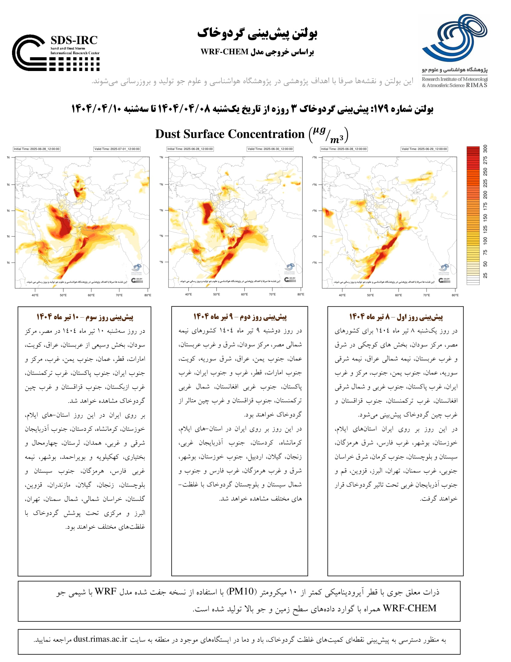 بولتن شماره ۱۷۹ پیش بینی گردوخاک ۳ روزه از تاریخ ۸ تا ۱۰ تیر ماه ۱۴۰۴ ۰۸ تیر ۱۴۰۴ | ۰۸:۴۶ کد : ۱۲۲۲ اخبـــار پژوهشگاه گزارش پیش بینی گردوخاک ایران و کشورهای همسایه ارسال به دیگران نام شما ایمیل شما ایمیل دریافت کننده ارسال انصراف تعداد بازدید:۵۱