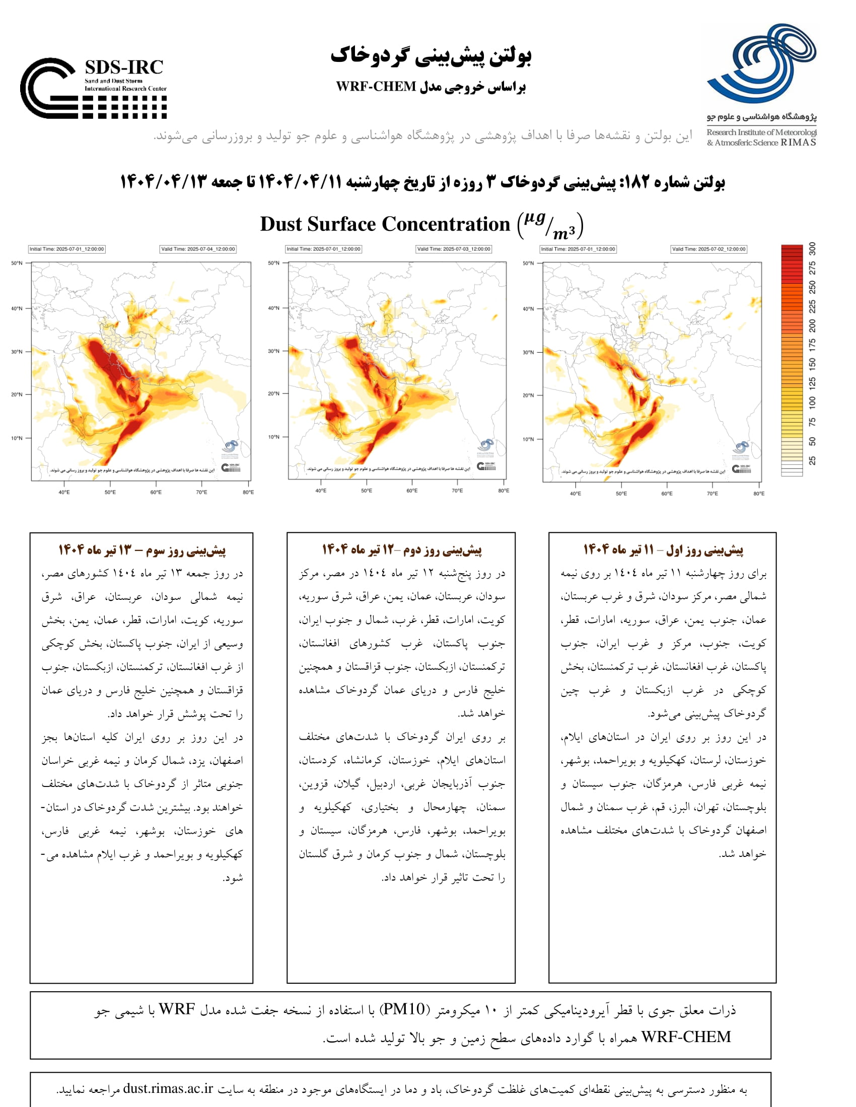 بولتن شماره ۱۸۲ پیش بینی گردوخاک ۳ روزه از تاریخ ۱۱ تا ۱۳ تیر ماه ۱۴۰۴ ۱۲ تیر ۱۴۰۴ | ۰۸:۵۲ کد : ۱۲۵۵ اخبـــار پژوهشگاه گزارش پیش بینی گردوخاک ایران و کشورهای همسایه ارسال به دیگران نام شما ایمیل شما ایمیل دریافت کننده ارسال انصراف تعداد بازدید:۸۴