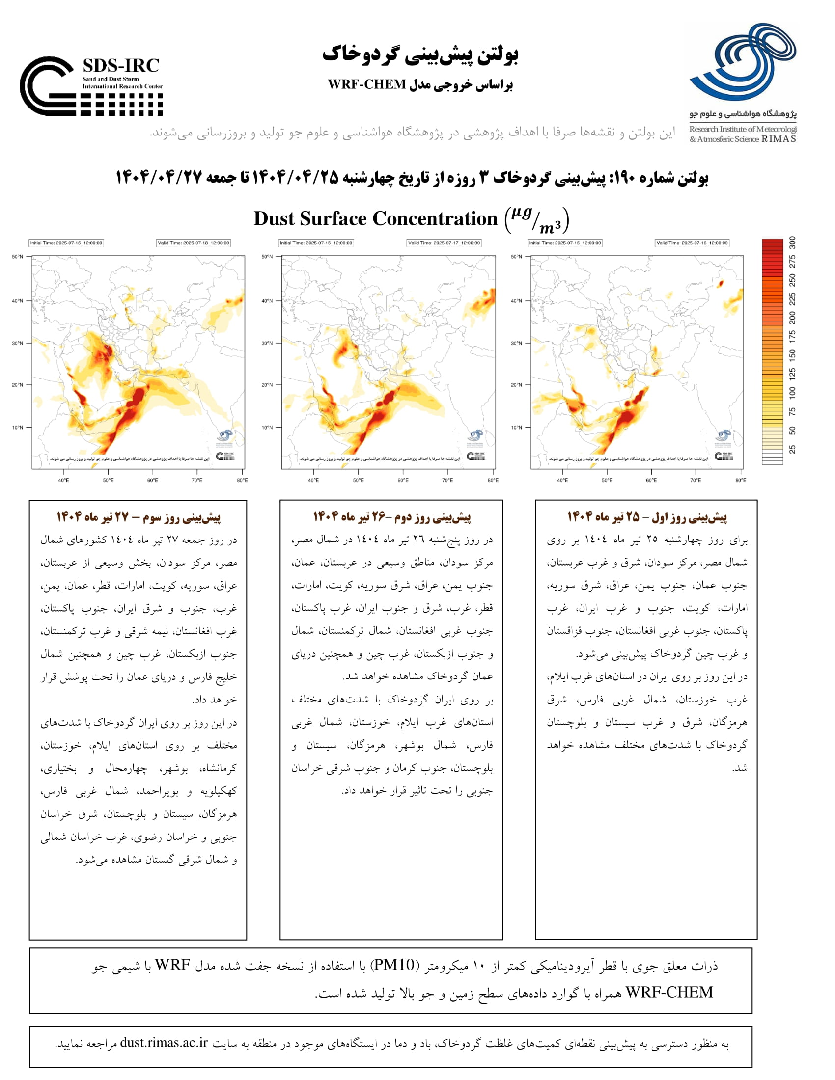 بولتن شماره ۱۹۰ پیش بینی گردوخاک ۳ روزه از تاریخ ۲۵ تا ۲۷ تیر ماه ۱۴۰۴ ۲۵ تیر ۱۴۰۴ | ۰۸:۳۳ کد : ۱۲۸۷ اخبـــار پژوهشگاه گزارش پیش بینی گردوخاک ایران و کشورهای همسایه ارسال به دیگران نام شما ایمیل شما ایمیل دریافت کننده ارسال انصراف تعداد بازدید:۵۱