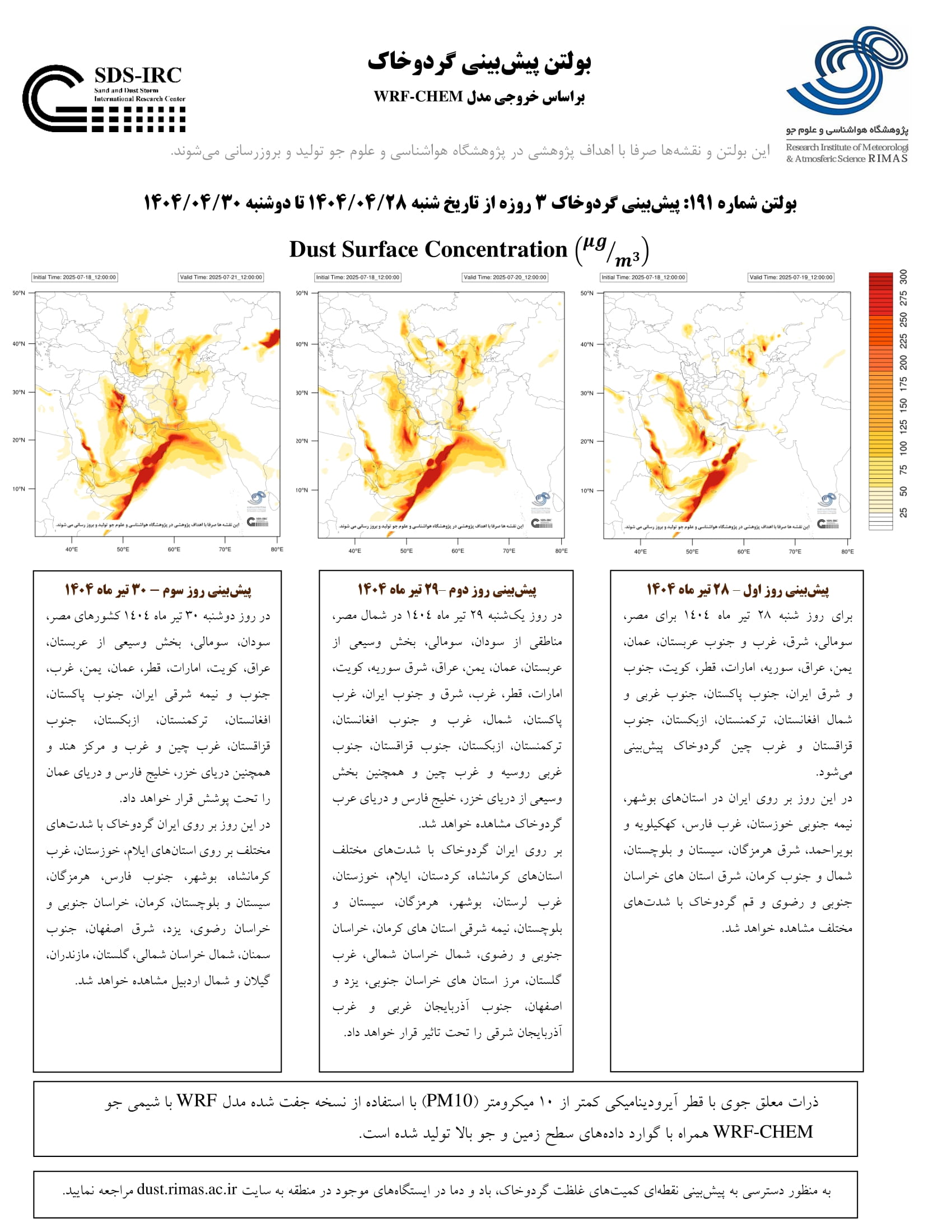 بولتن شماره ۱۹۱ پیش بینی گردوخاک ۳ روزه از تاریخ ۲۸ تا ۳۰ تیر ماه ۱۴۰۴ ۲۸ تیر ۱۴۰۴ | ۰۸:۳۶ کد : ۱۲۸۹ اخبـــار پژوهشگاه گزارش پیش بینی گردوخاک ایران و کشورهای همسایه ارسال به دیگران نام شما ایمیل شما ایمیل دریافت کننده ارسال انصراف تعداد بازدید:۵۶