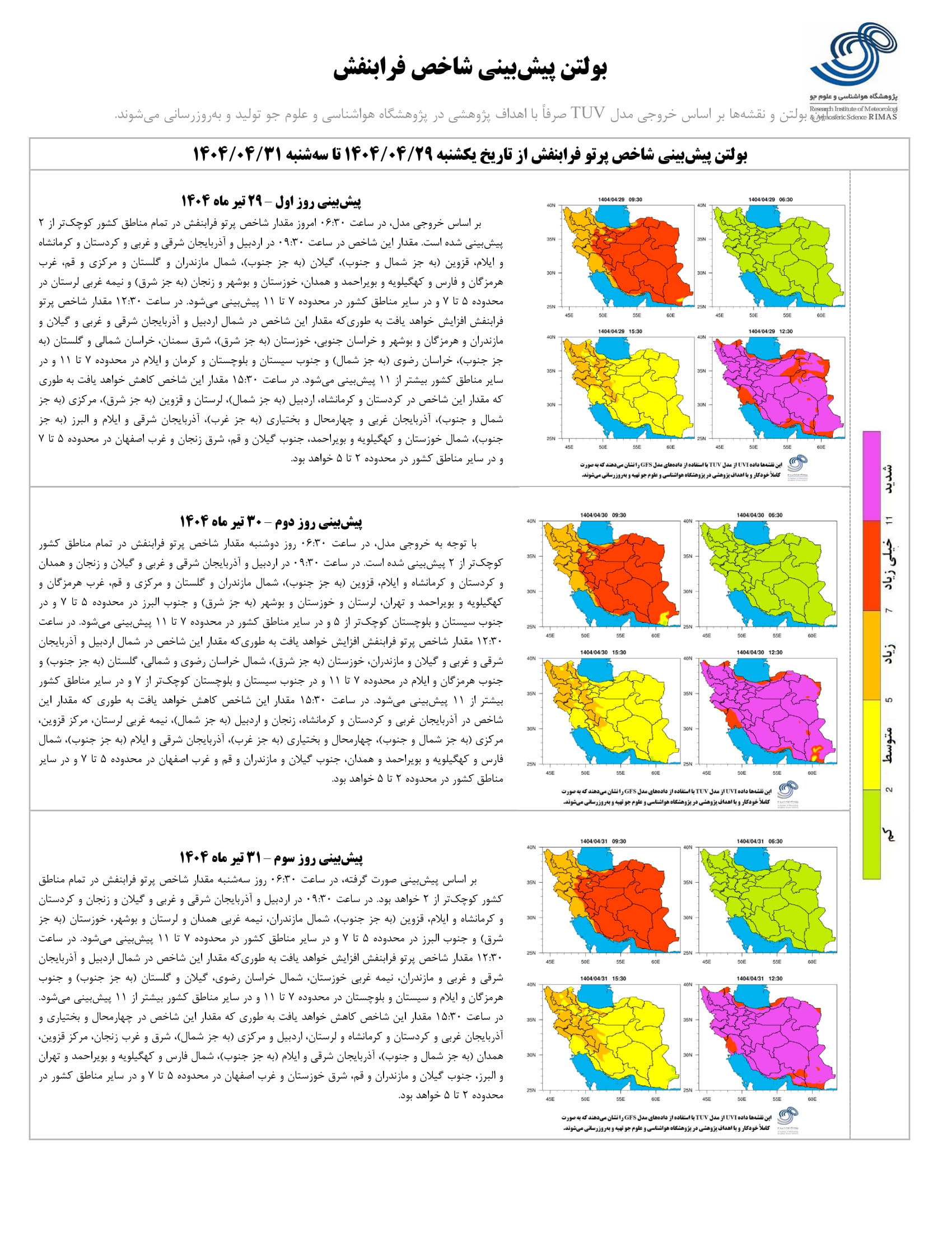 بولتن شماره ۲۴۱ پیش بینی شاخص پرتو فرابنفش ۳ روزه از تاریخ ۲۹ تا ۳۱ تیر ماه ۱۴۰۴ ۲۹ تیر ۱۴۰۴ | ۰۹:۴۷ کد : ۱۲۹۳ اخبـــار پژوهشگاه گزارش پیش بینی شاخص پرتو فرابنفش ارسال به دیگران نام شما ایمیل شما ایمیل دریافت کننده ارسال انصراف تعداد بازدید:۱۱۸