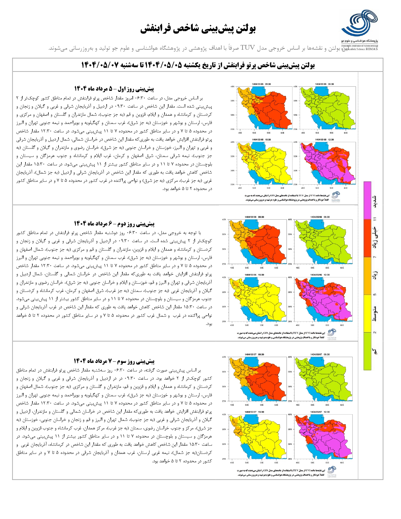 بولتن شماره ۲۴۸ پیش بینی شاخص پرتو فرابنفش ۳ روزه از تاریخ ۵ تا ۷ مرداد ماه ۱۴۰۴ ۰۵ مرداد ۱۴۰۴ | ۱۰:۳۶ کد : ۱۳۱۶ اخبـــار پژوهشگاه گزارش پیش بینی شاخص پرتو فرابنفش ارسال به دیگران نام شما ایمیل شما ایمیل دریافت کننده ارسال انصراف تعداد بازدید:۷۵