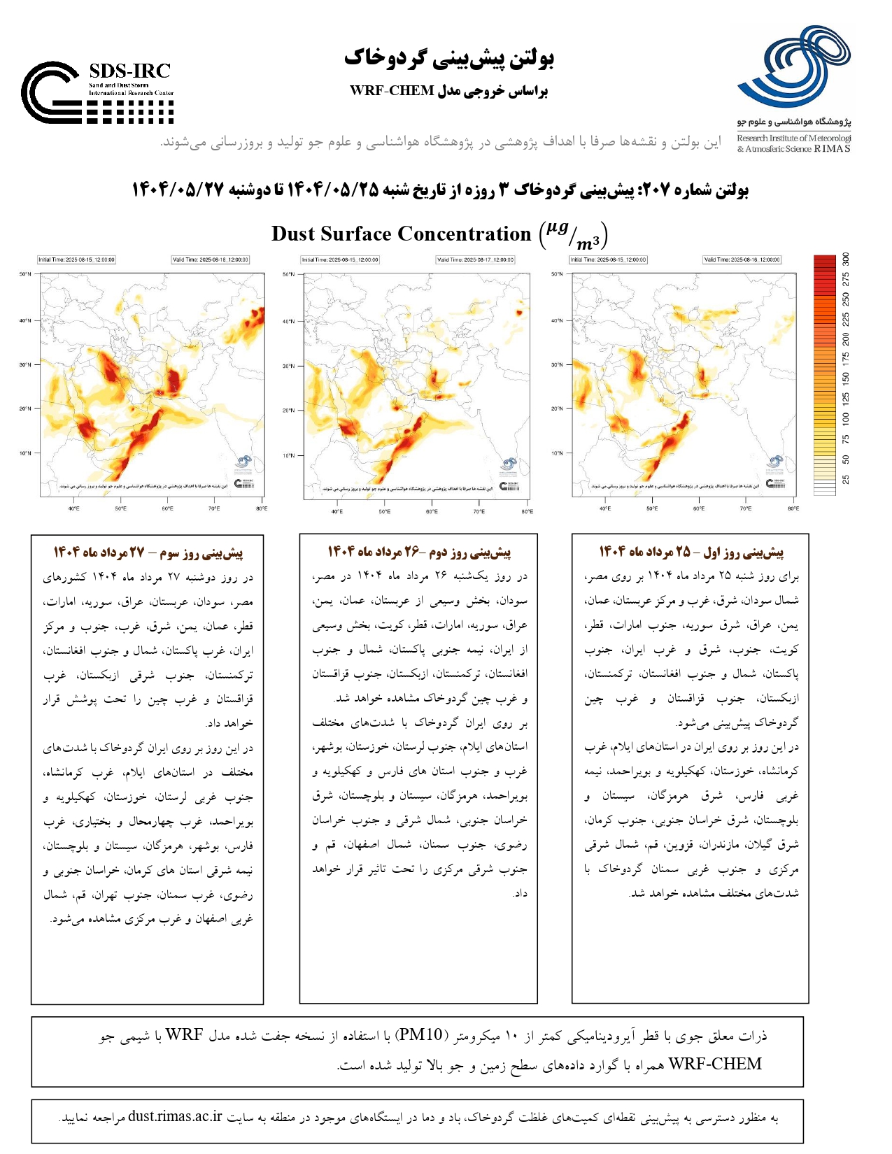 بولتن شماره ۲۰۸ پیش بینی گردوخاک ۳ روزه از تاریخ ۲۵ تا ۲۷ مرداد ماه ۱۴۰۴ ۲۵ مرداد ۱۴۰۴ | ۱۱:۲۳ کد : ۱۳۶۹ اخبـــار پژوهشگاه گزارش پیش بینی گردوخاک ایران و کشورهای همسایه ارسال به دیگران نام شما ایمیل شما ایمیل دریافت کننده ارسال انصراف تعداد بازدید:۲۹