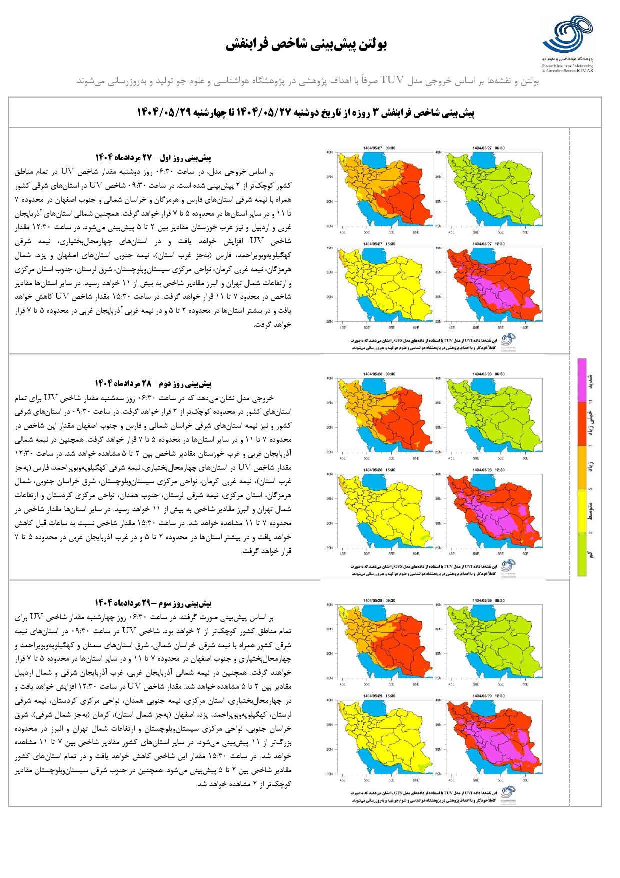بولتن شماره ۲۶۶ پیش بینی شاخص پرتو فرابنفش ۳ روزه از تاریخ ۲۷ تا ۲۹ مرداد ماه ۱۴۰۴ ۲۷ مرداد ۱۴۰۴ | ۰۸:۳۷ کد : ۱۳۷۴ اخبـــار پژوهشگاه گزارش پیش بینی شاخص پرتو فرابنفش ارسال به دیگران نام شما ایمیل شما ایمیل دریافت کننده ارسال انصراف تعداد بازدید:۴۵