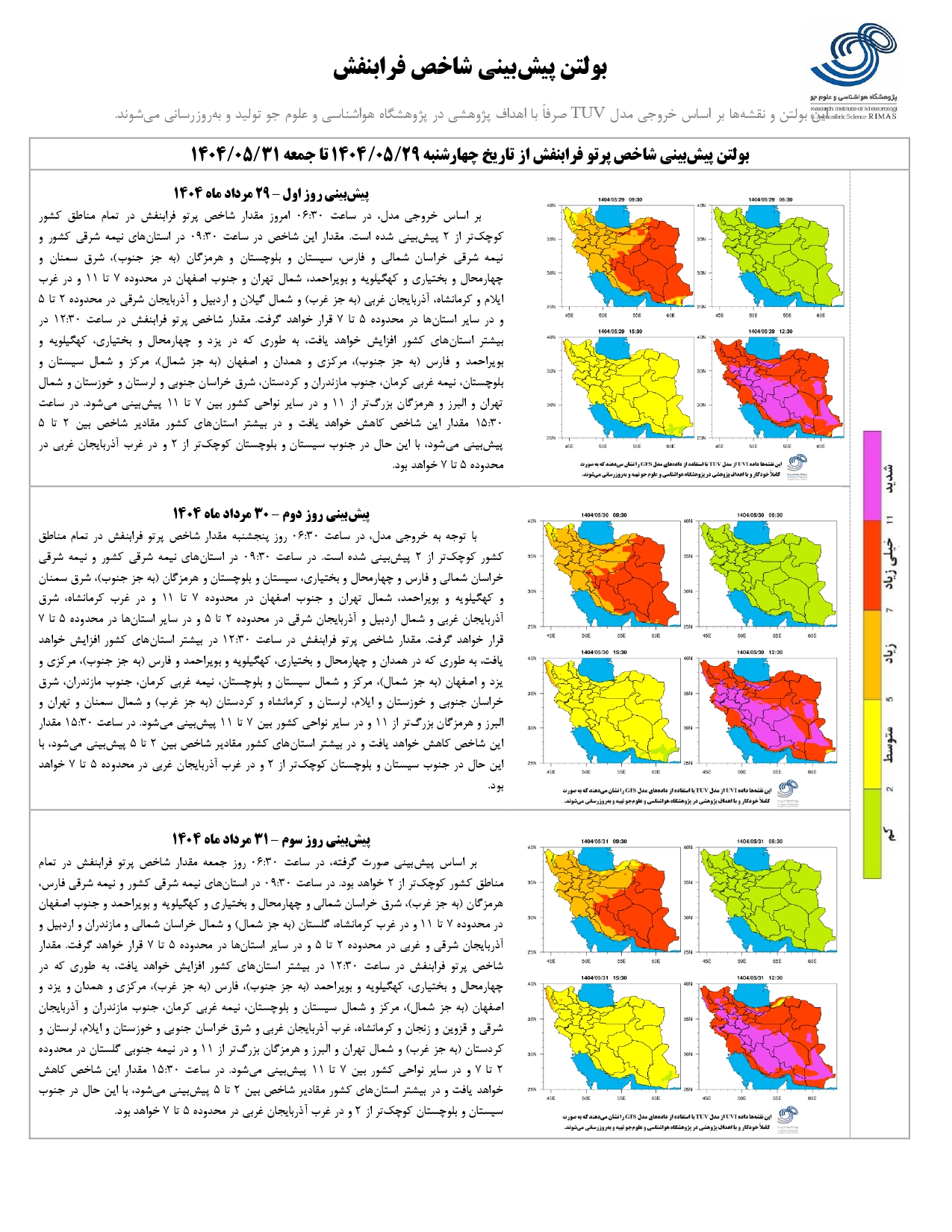 بولتن شماره ۲۶۸ پیش بینی شاخص پرتو فرابنفش ۳ روزه از تاریخ ۲۹ تا ۳۱ مرداد ماه ۱۴۰۴ ۲۹ مرداد ۱۴۰۴ | ۰۹:۰۵ کد : ۱۳۸۶ اخبـــار پژوهشگاه گزارش پیش بینی شاخص پرتو فرابنفش ارسال به دیگران نام شما ایمیل شما ایمیل دریافت کننده ارسال انصراف تعداد بازدید:۴۵