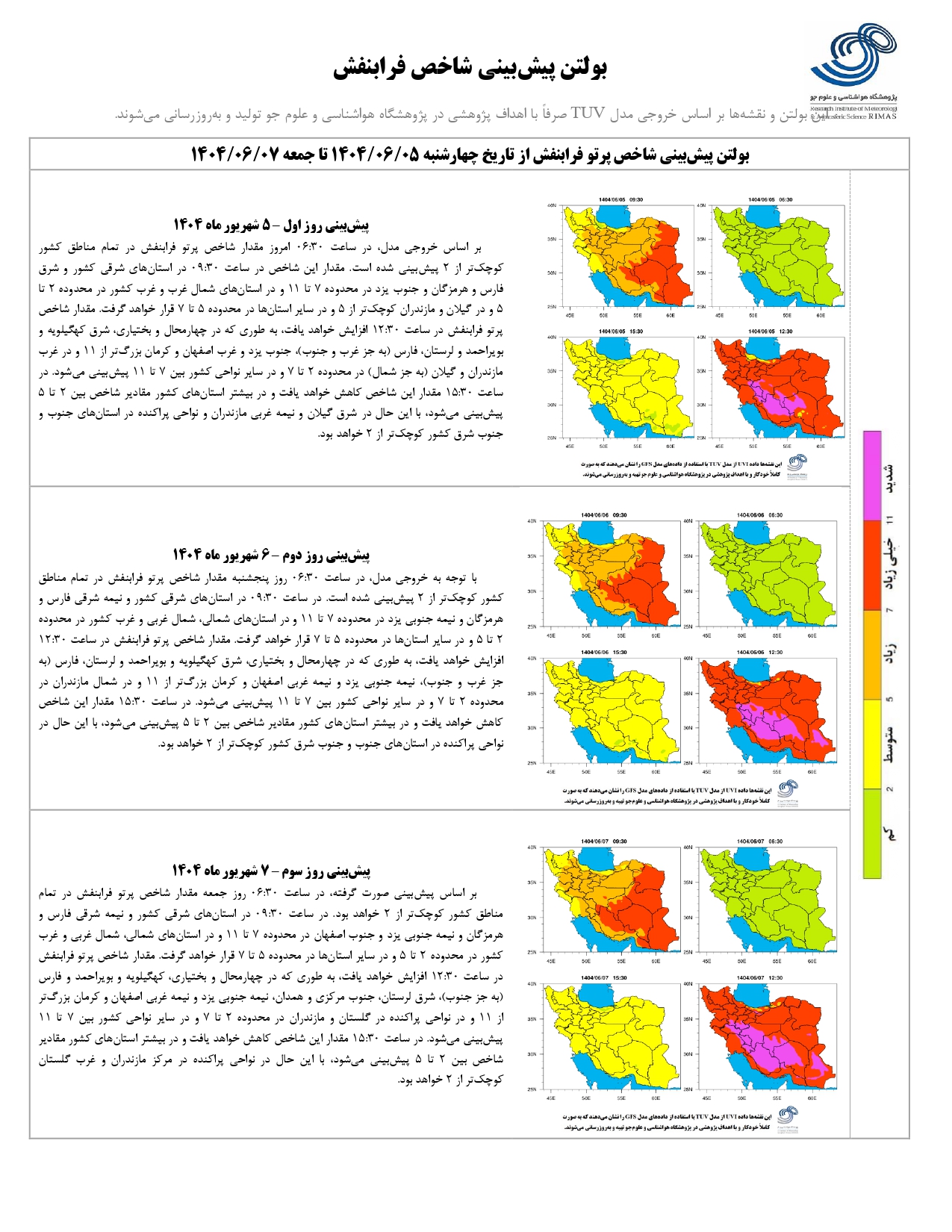بولتن شماره ۲۷۱ پیش بینی شاخص پرتو فرابنفش ۳ روزه از تاریخ ۵ تا ۷ شهریور ماه ۱۴۰۴ ۰۵ شهریور ۱۴۰۴ | ۰۹:۵۵ کد : ۱۴۰۳ اخبـــار پژوهشگاه گزارش پیش بینی شاخص پرتو فرابنفش ارسال به دیگران نام شما ایمیل شما ایمیل دریافت کننده ارسال انصراف تعداد بازدید:۲۴