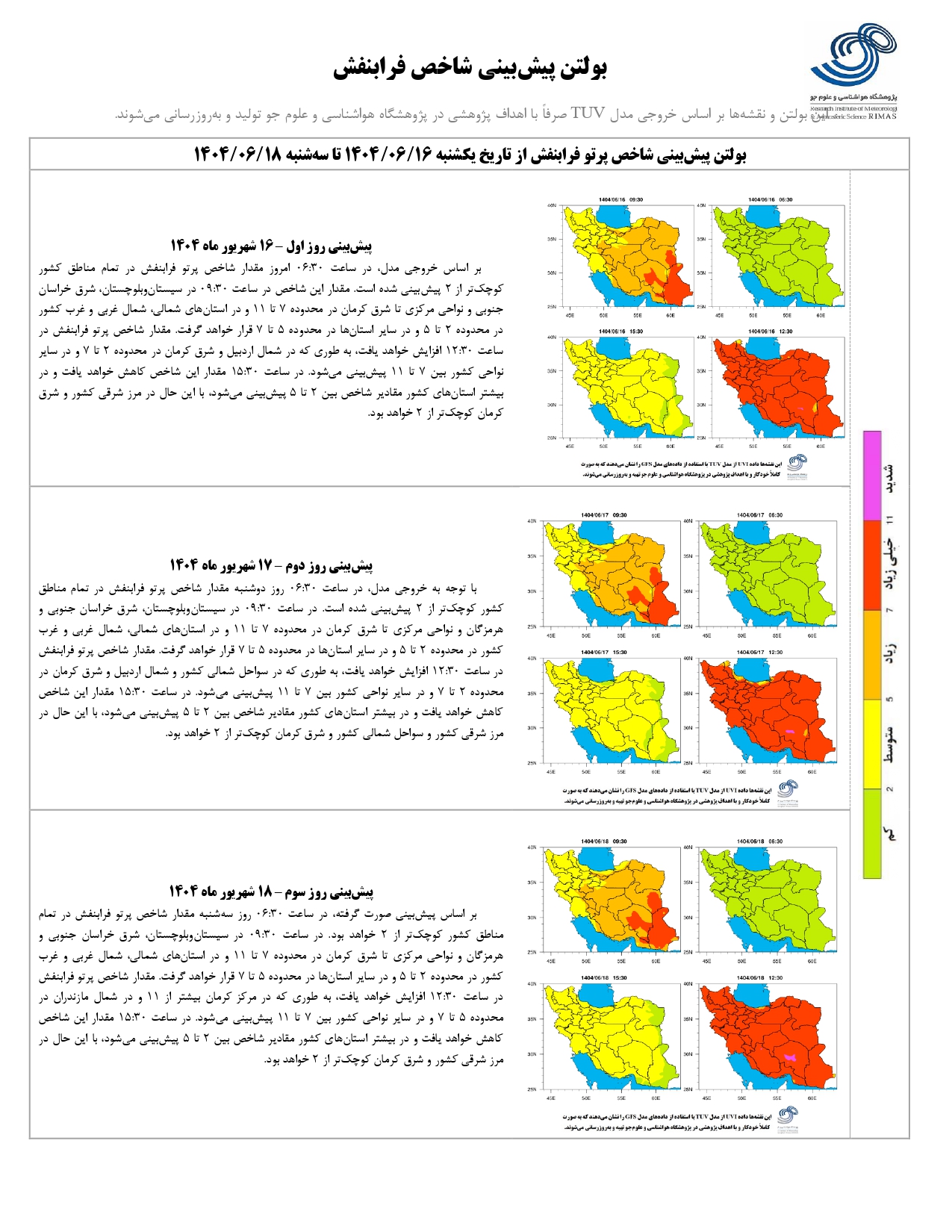 بولتن شماره ۲۷۷ پیش بینی شاخص پرتو فرابنفش ۳ روزه از تاریخ ۱۶ تا ۱۸ شهریور ماه ۱۴۰۴ ۱۶ شهریور ۱۴۰۴ | ۰۹:۲۳ کد : ۱۴۲۶ اخبـــار پژوهشگاه گزارش پیش بینی شاخص پرتو فرابنفش ارسال به دیگران نام شما ایمیل شما ایمیل دریافت کننده ارسال انصراف تعداد بازدید:۳۵