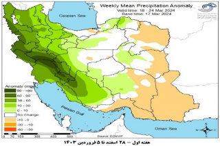 بر این اساس، بارش هفته اول (28 اسفند تا 5 فروردین 1403) از استان های واقع در شمال غرب کشور تا انتهای کوه های زاگرس جنوبی، استان ها در دامنه شرقی کوه های زاگرس، دو سوی مرکز و غرب کوه های البرز و بخش های محدودی از نوار شمال شرق و مرکز کشور بیشتر از نرمال است.